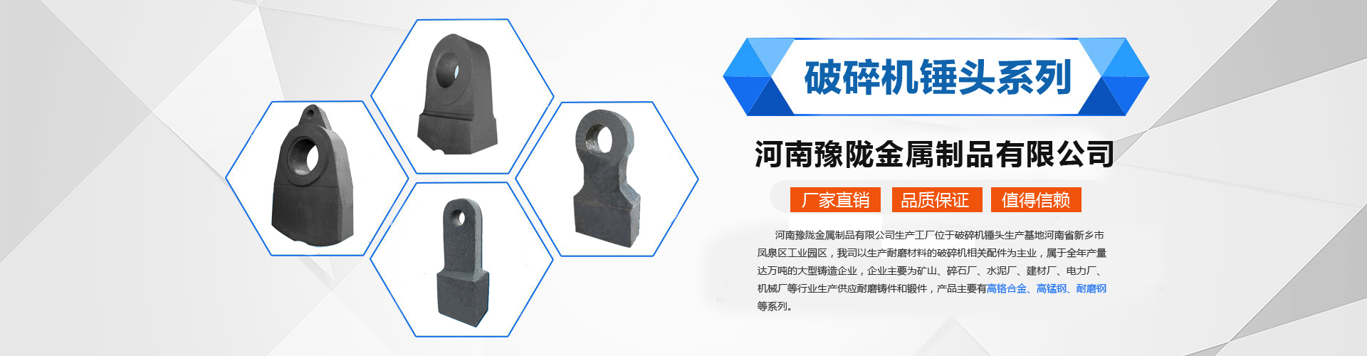 河南豫隴金屬制品有限公司生產工廠位于破碎機錘頭生產基地河南省新鄉市鳳泉區工業園區,我司以生產耐磨材料的破碎機相關配件為主業,屬于全年產量達萬噸的大型鑄造企業,企業主要為礦山、碎石廠、水泥廠、建材廠、電力廠、機械廠等行業生產供應耐磨鑄件和鍛件,產品主要有高鉻合金、高錳鋼、耐磨鋼等系列。